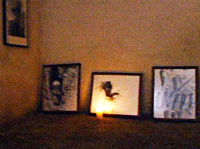 Quelques bougies sont posées ça et là, entre l'offrande
